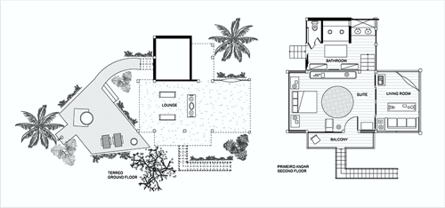 fresco living room with hammock and bar, the bathroom's double shower,